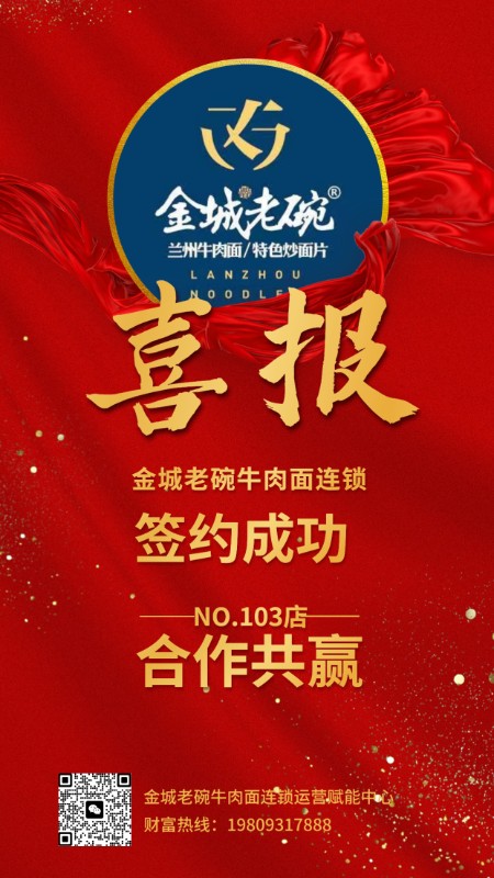 再次祝賀金城老碗牛肉面連鎖金昌加盟店簽約成功!祝生意興隆,財源滾滾!