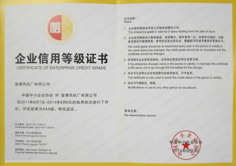 熱烈慶祝:一、淄博風(fēng)機(jī)廠有限公司全系產(chǎn)品通過能效綠色節(jié)能環(huán)保二級(jí)認(rèn)證. 二、 淄博風(fēng)機(jī)廠有限公司通過安全標(biāo)準(zhǔn)化驗(yàn)收合格. 三、注冊(cè)資金增資至7800萬.