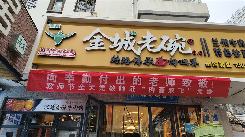“人民教師、無上光榮、教書育人、無私奉獻(xiàn)”,在我國第40個(gè)教師節(jié)來臨之際,為了感恩老師誨人不倦、教書育人的奉獻(xiàn)精神,金城老碗牛肉面蘭州直營店——大眾巷總店、五里鋪華邦店、靜寧路店聯(lián)合省外部分加盟店同時(shí)啟動“向辛勤付出的老師致敬”的感恩老師活動:“教師節(jié)全天憑教師資格證‘肉蛋雙飛’免費(fèi)”。