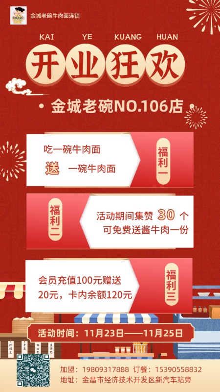 2023年11月份金城老碗牛肉面NO.106店盛大開(kāi)業(yè)啦!